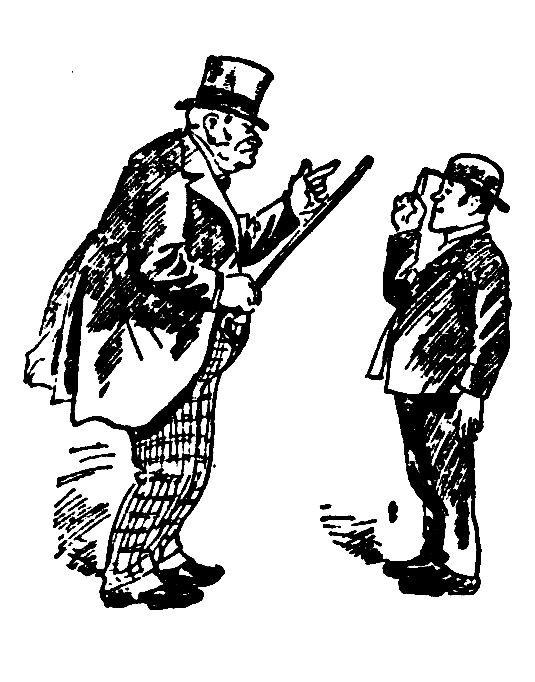 "Look here, young feller," says the visitor, "I'm Cornelius Vanderbilt out for a spin in my new automobile, and I won't be disturbed by the likes of you."