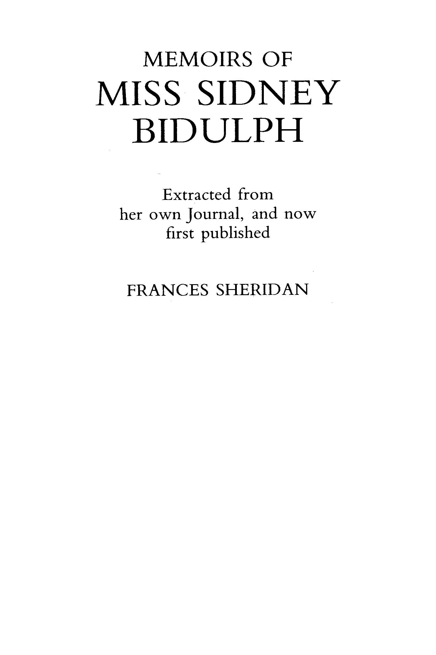 Title: Memoirs of Miss Sidney Biddulph