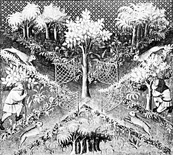 No work dealing with the chase of wild animals in mediæval times would be complete were it to omit all reference to snares, traps, gins, pitfalls, and other devices to take game other than by hunting. The "Master of Game" mentions the subject but briefly, saying, "Truly I trow no good hunter would slay them so for no good," but "Gaston Phœbus" contains seventeen short chapters in which the author as well as the miniaturist describe the various contrivances then in use, although the same disdain of these unsportsmanlike methods is expressed by G. de F. that marks the Duke of York's pages. In the first edition of the present work will be found descriptions of the principal snares used in the Middle Ages.