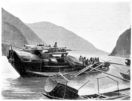 | Boat-travel.—Vegetation.—Trackers.—Terrace of the Sun.—Gold Diamond Mountain.—Meng Liang's Ladder.—Great Szechuan Road.—Steamer Voyage.—Chinese Hades.—Caves | 31 |