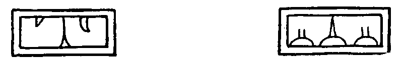the first, as stated, seems to refer to the casting of lots, 2 is the sign for H, 3 denotes the female figure pictured beneath it, and 4 is the sign q with the Ben-Ik on top of it. In the second group 5 is the same as 1, 6 is the cross b, and 7 and 8 are the hieroglyphs for A.