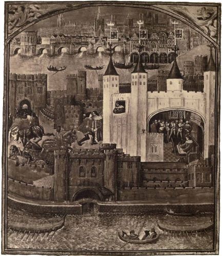 | London Bridge and the Tower. From a Manuscript of the Poems of Charles, duke of Orleans. British Museum, 16 F. ii. |