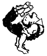 As the vehicle was being pushed dangerously near the edge of a somewhat steep curb, I was alarmed, and ventured to faintly remind her that the little one was in danger of being thrown out.