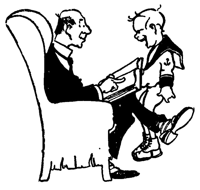 "Well," remarked the boy, sympathetically, "if you'll buy a box, guv'nor, I don't mind teachin' yer."