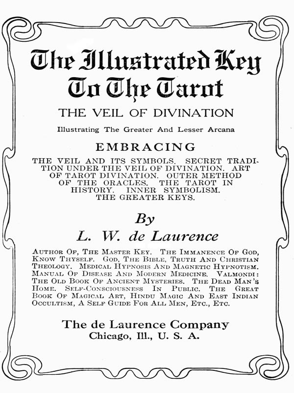 The frontispiece to this work represents the absolute Key of the occult sciences, given by William Postel and completed by the writer. It is reproduced in The Tarot Of The Bohemians, and in the preface which I have prefixed thereto, as indeed elsewhere, I have explained that Postel never constructed a hieroglyphical key. Eliphas Lévi identifies the Tarot as that sacred alphabet which has been variously referred to Enoch, Thoth, Cadmus and Palamedes. It consists of absolute ideas attached to signs and numbers. In respect of the latter, there is an extended commentary on these as far as the number 19, the series being interpreted as the Keys of Occult Theology. The remaining three numerals which complete the Hebrew alphabet are called the Keys of Nature. The Tarot is said to be the original of Chess, as it is also of the Royal Game of Goose. This volume contains the author's hypothetical reconstruction of the tenth Trump Major, showing Egyptian figures on the Wheel of Fortune.
