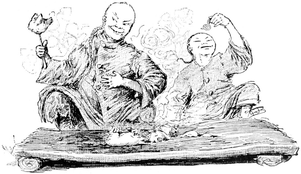 Ho-ti trembled every joint while he grasped the abominable things wavering whether he should not put his son to death for an unnatural young monster, when the crackling scorching his fingers, as it had done his son's, and applying the same remedy to them, he in his turn tasted some of its flavour, which, make what sour mouths he would for a pretence, proved not altogether displeasing to him. In conclusion (for the manuscript here is a little tedious) both father and son fairly sat down to the mess, and never left off till they had despatched all that remained of the litter.