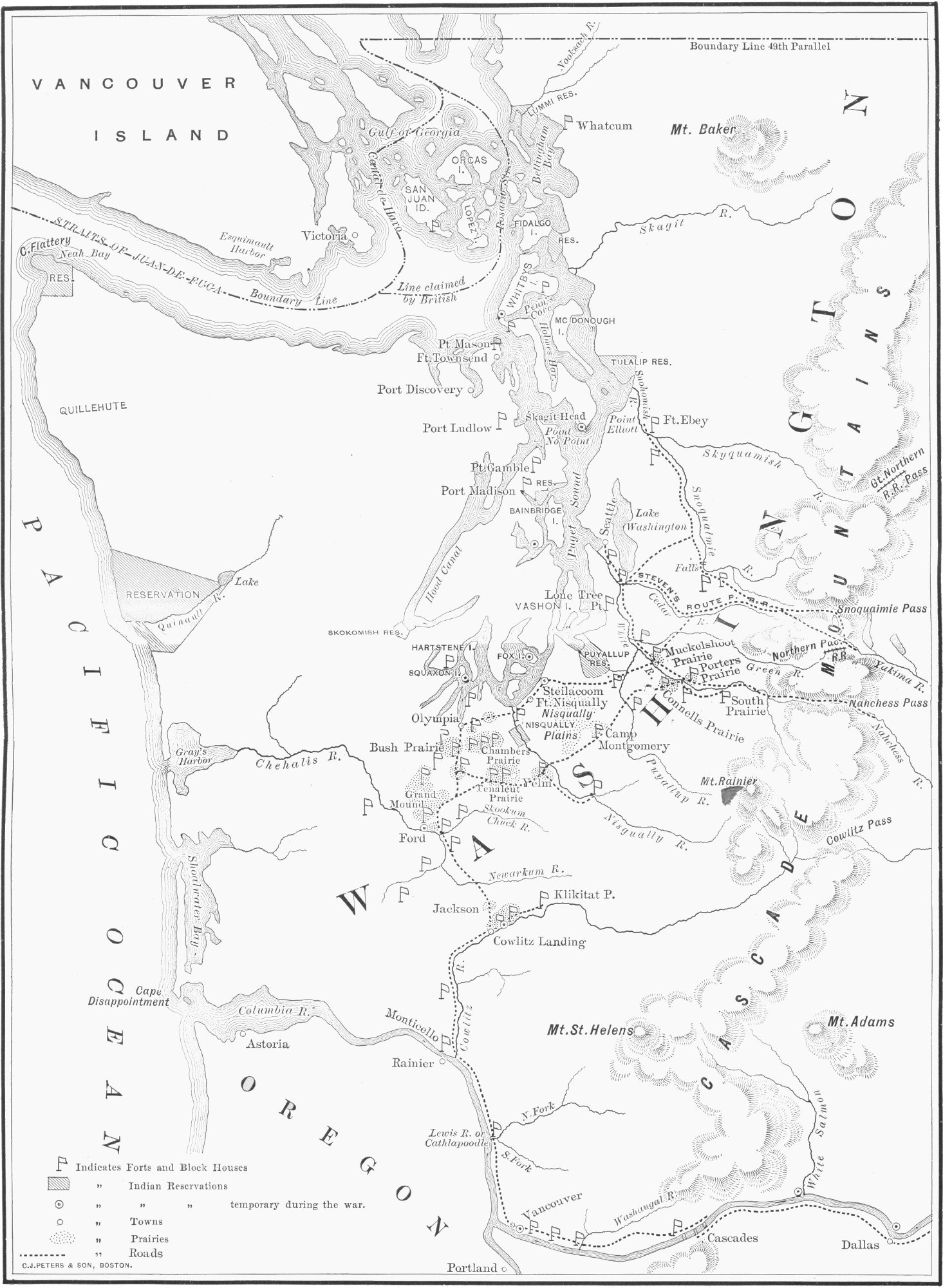 | Death of George Watson Stevens—Governor Stevens keeps Indians in order—Visits Vancouver—Confers with Superintendent Palmer, of Oregon—Firm stand against British claim to San Juan Archipelago—Purchases Taylor donation claim—Democratic convention to nominate delegate in Congress—Governor Stevens a candidate—Effect of speech before convention: “If he gets into Congress, we can never get him out”—J. Patton Anderson nominated | 10 |
