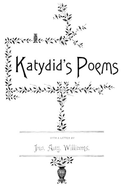 *** START OF THIS PROJECT GUTENBERG EBOOK KATYDID'S POEMS ***