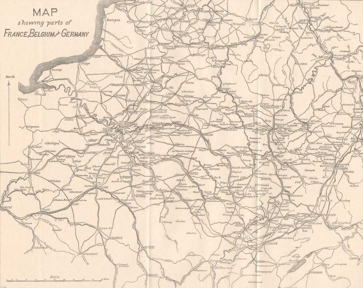 Forsyth and I were lodged with the notary of the village, who over and over again referred to his good fortune in not having to entertain any of the Germans. He treated us most hospitably, and next morning, on departing, we offered compensation by tendering a sum—about what our bill would have been at a good hotel—to be used for the "benefit of the wounded or the Church." Under this stipulation the notary accepted, and we followed that plan of paying for food and lodging afterward, whenever quartered in private houses.