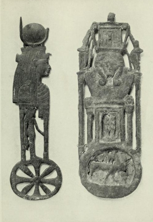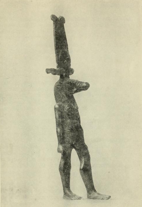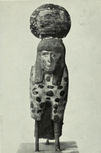Fetishism, too, bulks largely in Egyptian religious conceptions. Many of the gods are represented as carrying the fetishes from which they may have originally been derived. Thus the arrow of Neith is fetishistic (a statement which will afterwards be justified), as are the symbols of Min and other deities.