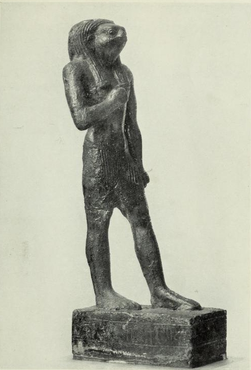 Many Egyptologists deny that totemism entered as a force into the religion of ancient Egypt. Totemism may be defined as the recognition, exploitation, and adjustment of the imaginary mystic relationship of the individual or the tribe to the supernatural powers or spirits which surround them. Whereas the fetish is to some extent the servant of its owner, a spirit lured to dwell in a material object to do the behest of an individual or a community, the totem, whether personal or tribal, is a patron and protector and is often represented in animal or vegetable shape. The basic difference between the individual and tribal totem is still obscure, but for our present purpose it will be sufficient to deal with the latter. The most notable antagonist of the theory that some of the divinities of ancient Egypt are of totemic origin is Dr. E.A. Wallis Budge, the well-known Egyptologist. In his Gods of the Egyptians he says: "It now seems to be generally admitted by ethnologists that there are three main causes which have induced men to worship animals, i.e. they have worshipped them as animals or as the dwelling-place of gods or as representatives of tribal ancestors. There is no reason whatsoever for doubting that in neolithic times the primitive Egyptians worshipped animals as animals and as nothing more." None of the above statements approaches a definition of totemism. The theory that the totem is a tribal ancestor is now regarded as doubtful. Dr. Budge continues: "The question as to whether the Egyptians worshipped animals as representatives of tribal ancestors or 'totems' is one which has given rise to much discussion, and this is not to be wondered at, for the subject is one of difficulty. We know that[Pg 9] many of the standards which represent the nomes of Egypt are distinguished by figures of birds and animals, e.g. the hawk, the bull, the hare, etc. But it is not clear whether these are intended to represent 'totems' or not.... The animal or bird standing on the top of a nome perch or standard is not intended for a fetish or a representative of a tribal ancestor, but for a creature which was regarded as the deity under whose protection the people of a certain tract of territory were placed, and we may assume that within the limits of that territory it was unlawful to kill or injure such animal or bird." Totems are invariably carried on banners, poles, and shields, and it is unlawful to kill them. He also states that the totemic theory "may explain certain facts connected with the animal-worship of numbers of savage and half-savage tribes in some parts of the world, but it cannot in the writer's opinion be regarded as affording an explanation of the animal-worship of the Egyptians."