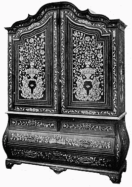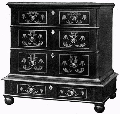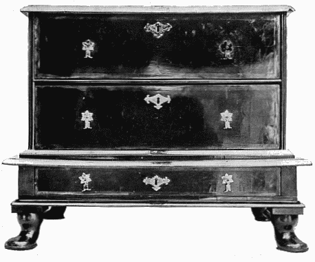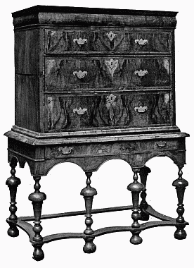 [1]William the Third was a Dutchman and, although he was for thirteen years King of England, he remained a Dutchman until his death. His English was bad, his accent was rough, and his vocabulary limited. He had a Dutch guard, the friends whom he trusted were Dutch, and they were always about him, filling many of the offices of the Royal Household. He came to England as a foreigner and it remained to him a foreign country. His advent to the throne brought about certain changes in the style of furniture which are generally described as "the Dutch influence," which, however, had its origin at least as far back as the reign of Charles II.