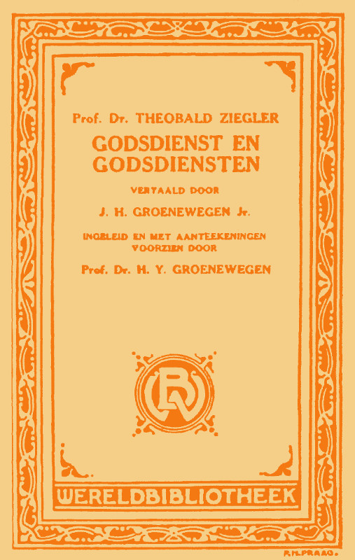 Zoo worde dan onze Wereldbibliotheek ook in dien zin weder meer haar naam waardig, dat zij over het groote wereldverschijnsel dat godsdienst heet, dat de menschenwereld zal blijven bewegen en vervullen gelijk het de menschenziel van alle tijden beweegt en vervult, helpt kennis verspreiden en licht ontsteken. Komt het den godsdienst in zijn ontwikkeling eenigermate ten goede, wij zullen er dankbaar voor zijn. Voorloopig zullen wij reeds tevreden zijn, indien dit geschrift iets bijdraagt tot die ware ontwikkeling, voor welke geen der hoogere uitingen van menschelijk geestesleven een gesloten boek is.