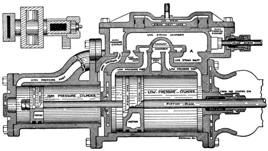The boiler should be well set; the firebox large, with large grate surface if a locomotive type of boiler is used, and the number of flues should be sufficient to allow good combustion without forced draft. A return flue boiler should have a large main flue, material of the required 5-16-inch thickness, a mud drum, and four to six hand-holes suitably situated for cleaning the boiler. There should be a rather high average boiler pressure, as high pressure is more economical than low. For a simple engine, 80 pounds and for a compound 125 pounds should be minimum.