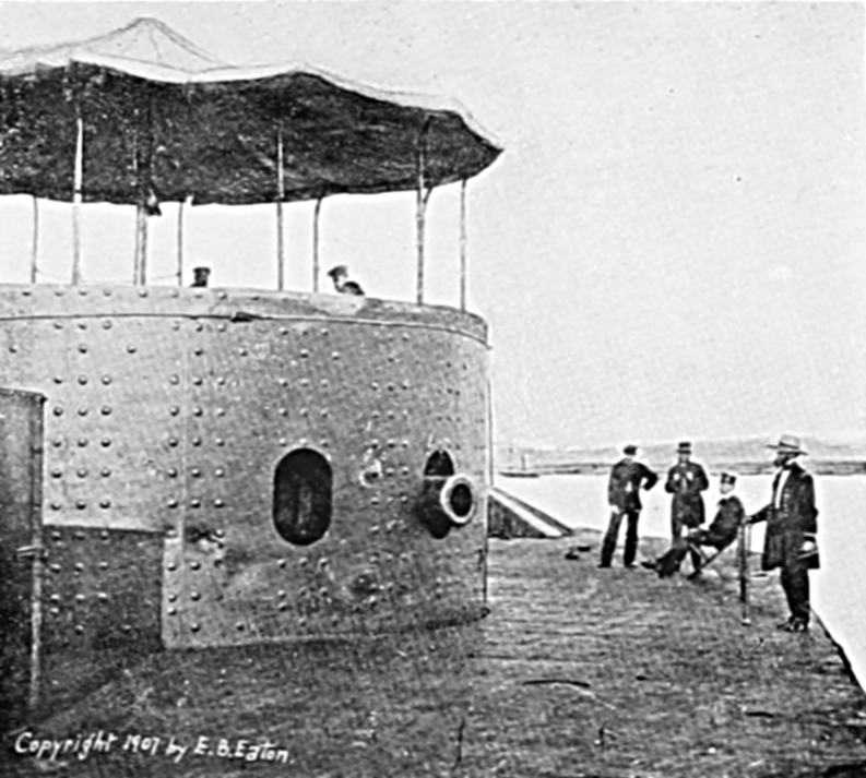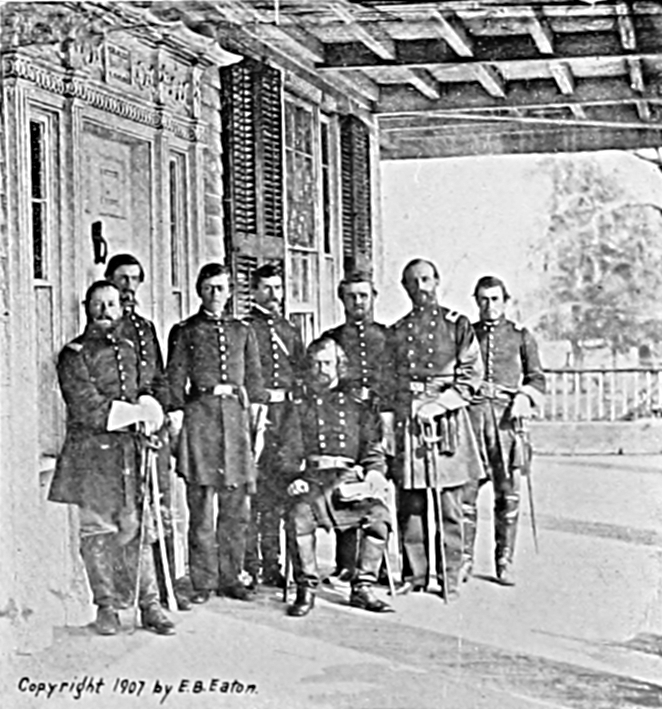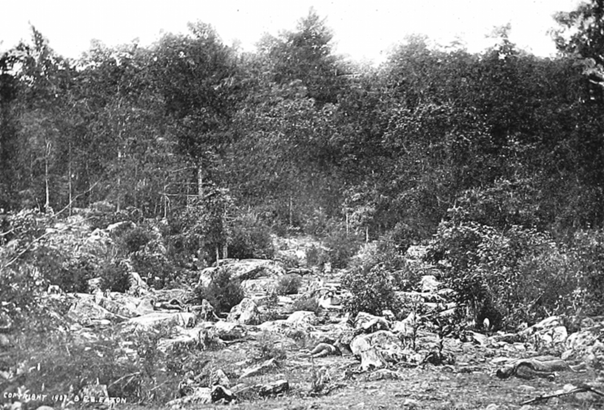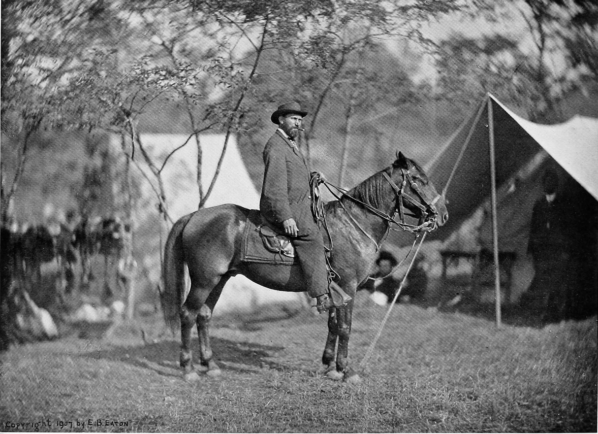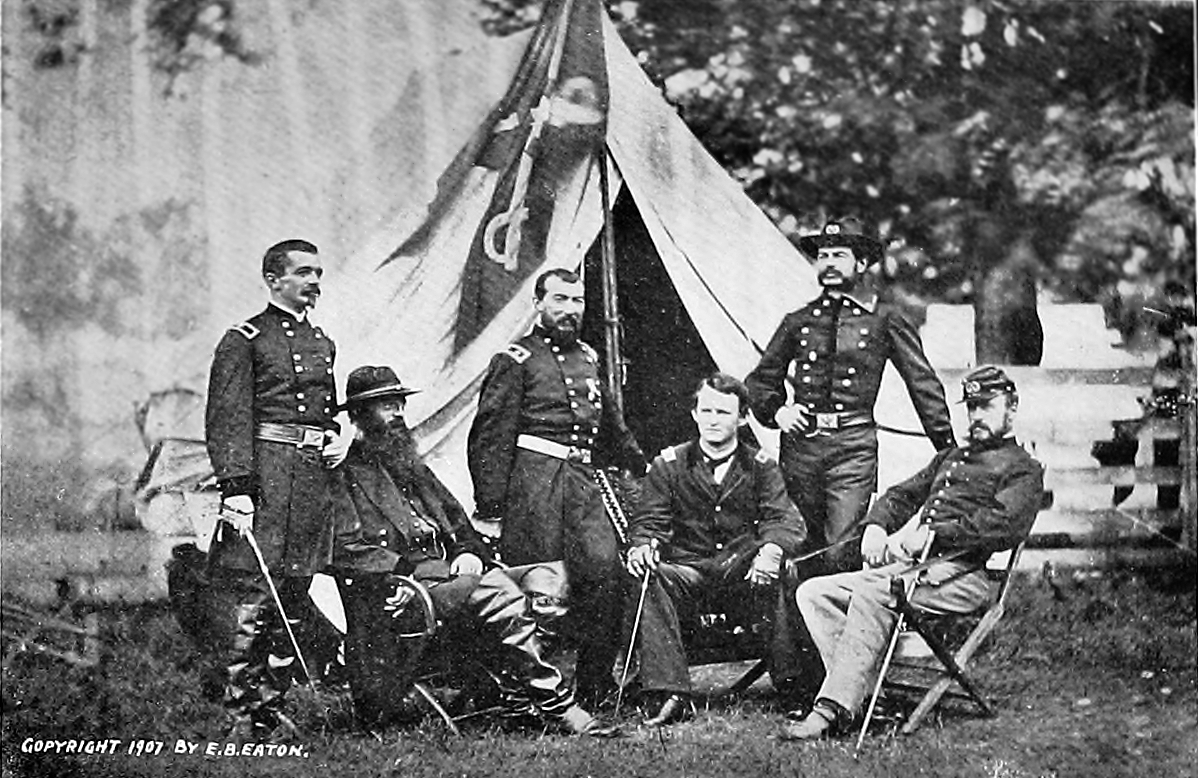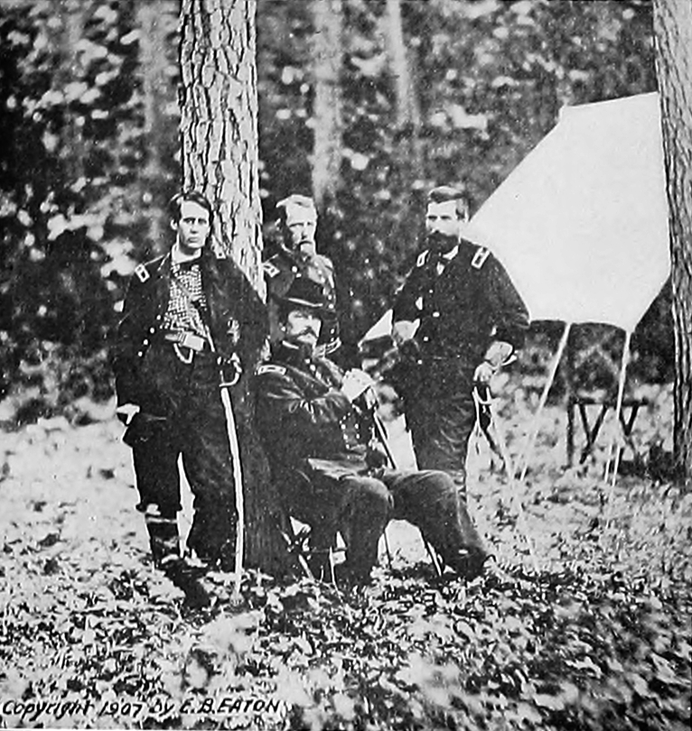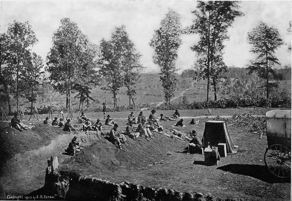 There are several thousand negatives in the vaults that have not yet been catalogued. No negative is registered until its authenticity is proved beyond a doubt. The testimony of hundreds of veterans is secured in many instances before the locality of the negative is established. The warriors who participated in these scenes are fast passing away and the work of identification is progressing as rapidly as absolute accuracy will allow. At the National Encampment at Saratoga hundreds of "unknown" negatives were identified by soldiers who saw them taken and offered their affidavits. Requests have been received from Grand Army Posts for enlargements of the rare photographs of Lincoln in the tent with McClellan at Antietam, of the Armies in Camp, and other views, the existence of which has been hitherto unknown. Mr. Eaton authorizes the enlargement of any negative for this purpose, providing that it is to be treasured in the hall of a Grand Army Post. All requests must be sent direct, accompanied by references, and no enlargement will be allowed until it bears the written signature of Edward B. Eaton, Hartford, Connecticut.