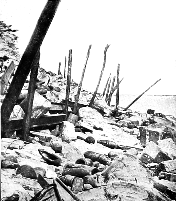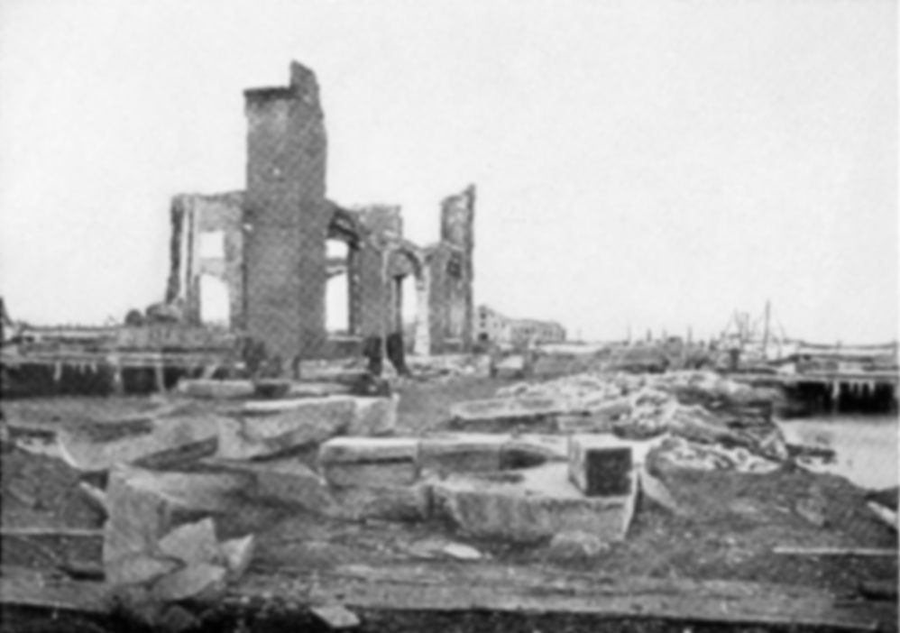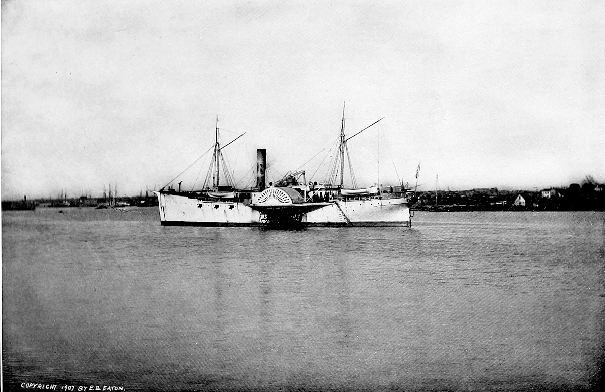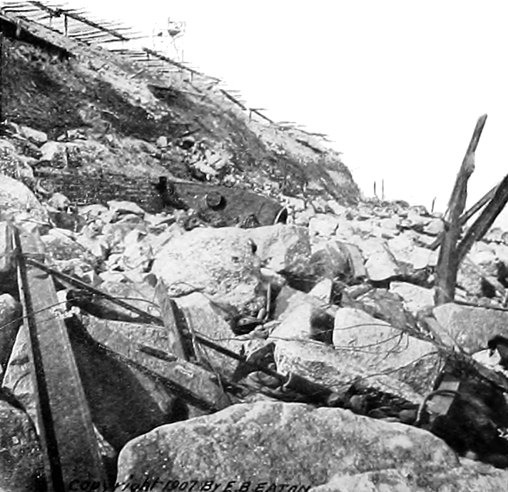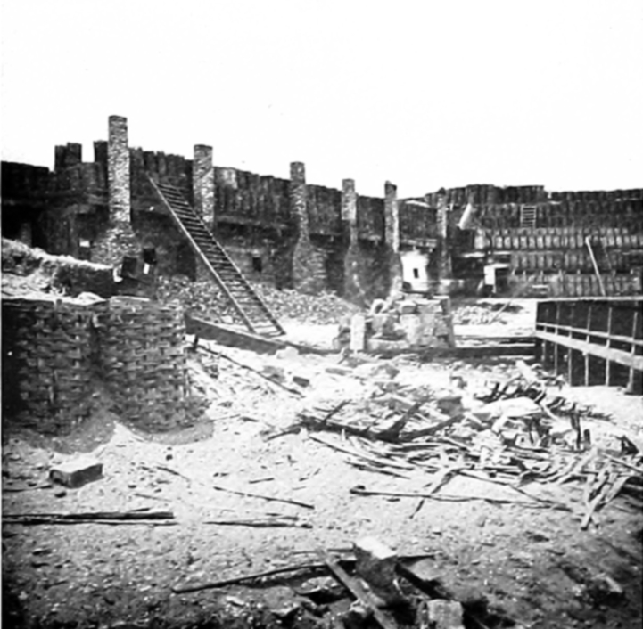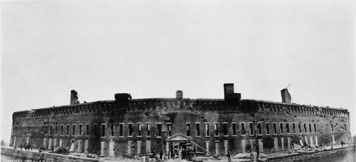 "THEY have fired on Fort Sumter!" These are the words that rang across the continent on the morning of the twelfth of April, in 1861, and the echo was heard around the world. The shot that began one of the fiercest conflicts that civilization has ever seen was fired just before sunrise at four in the morning. Special editions of newspapers heralded the tidings through the land. Thousands of excited men crowded the streets. Trade was suspended. Night and day the people thronged the thoroughfares, eager to hear the latest word from the scene of action. Friday and Saturday were the most anxious days that the American people have ever experienced. When the news came on Sunday morning that Major Robert Anderson had evacuated the fort with flags flying and drums beating "Yankee Doodle," the North was electrified with patriotism. The stars and stripes were thrown to the breeze from spires of churches, windows of residences, railway stations and public buildings. The fife and drum were heard in the streets. Recruiting offices were opened on public squares. Men left their business and stepped into the ranks. A few days later, when the brave defenders of Fort Sumter reached New York, the air was alive with floating banners. Flowers, fruits and delicacies were showered upon the one hundred and twenty-nine courageous men who had so gallantly withstood the onslaught of six thousand. Crowds seized the heroes and carried them through the streets on their shoulders. The South was mad with victory. It was believed that its independence had been already gained. Several days after the bombardment this picture was secured of the historic fort in South Carolina, about which centered the beginning of a great war. It was taken in four sections and this is a panoramic view of them all. The photograph did not fall into the possession of the Government, but was held for many years by a Confederate naval officer, Daniel Ellis, commander of the twenty-gun ram "Chicora" and at one time in command of Fort Sumter. It is now in possession of James W. Eldridge of Hartford. It corrects the erroneous impression that the fort was demolished in 1861. It stood the bombardment with but slight damage, other than a few holes knocked in the masonry as this picture testifies. In saluting the American flag before the evacuation on April 15, Private Daniel Hough was killed and three men wounded by the premature explosion of one of their own guns.
