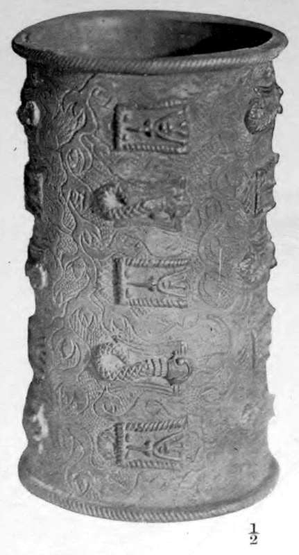 Fig. 34.—Bronze drinking cup, the same as represented in wood-carving, Fig. 27, Plate VI.