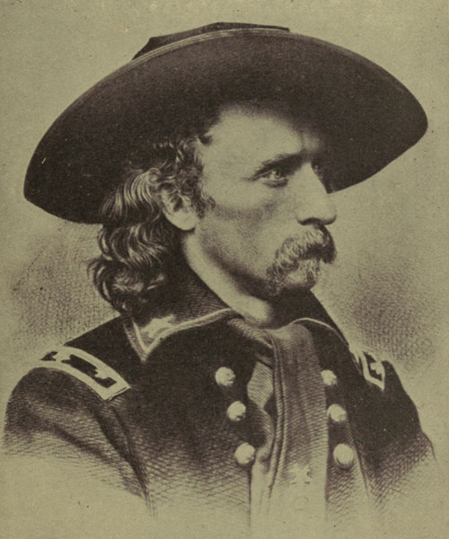 They had passed cautiously through a dense grove of trees and the head of the column entered upon a beautiful level meadow about a mile in width extending along the west side of the stream and skirted east and west by high bluffs. It was apparent at sight that this meadow had been the site of an immense Indian village and showed signs of hasty abandonment. Hundreds of lodge poles with finely dressed buffalo robes, dried meats, utensils and Indian trinkets were left behind. In a large tepee still standing were the stiffened forms of ten dead Indians. Every step of the march from here on showed signs of a desperate struggle. The dead bodies of Indian horses were seen; here and there were cavalry equipments, and soon the bodies of dead troopers, beside their frantic and still struggling, wounded horses gave evidence of a disastrous battle, and farther on was revealed a scene calculated to appall the stoutest heart. Here was a skirmish line marked by rows of slain with heaps of empty cartridge shells before them, and their officers lay dead just behind them. Still farther on men lay in winrows, their faces still drawn with the awful desperation of a struggle[28] unto death; pulseless hands still clasped blood-stained sabres. Near the highest point of the hill lay the body of General Custer. There was a cordon of his brave defenders dead about him; his long hair was clotted with blood, while a great wound in his breast told how the brave soul had gone somewhere out into the wide waste and hush of eternity. Near him lay the body of his brother, Captain Custer, and some distance away another brother, Boston Custer, and his nephew, Armstrong Reed, a youth of 19. All were scalped except General Custer and Mark Kellogg, a correspondent of the New York Herald.