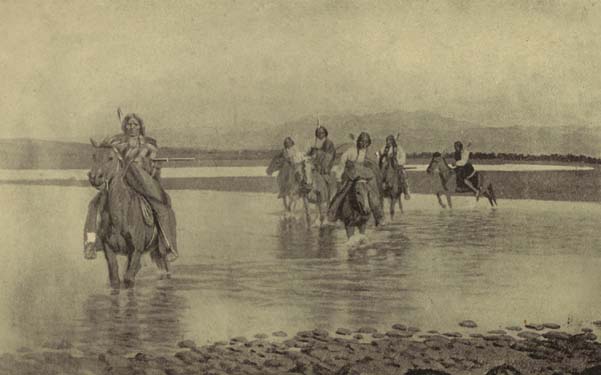 The point where the little armies separated, many of their men never to meet again, the river wound its silvery course for miles in the narrow valley as far as the eye could reach; its banks were fringed with the elm and cottonwood, whose foliage hid from view a thousand Indian tepees beyond the river. Sharp eyes had noted the advancing columns, and quick brains had already begun to plan their destruction.