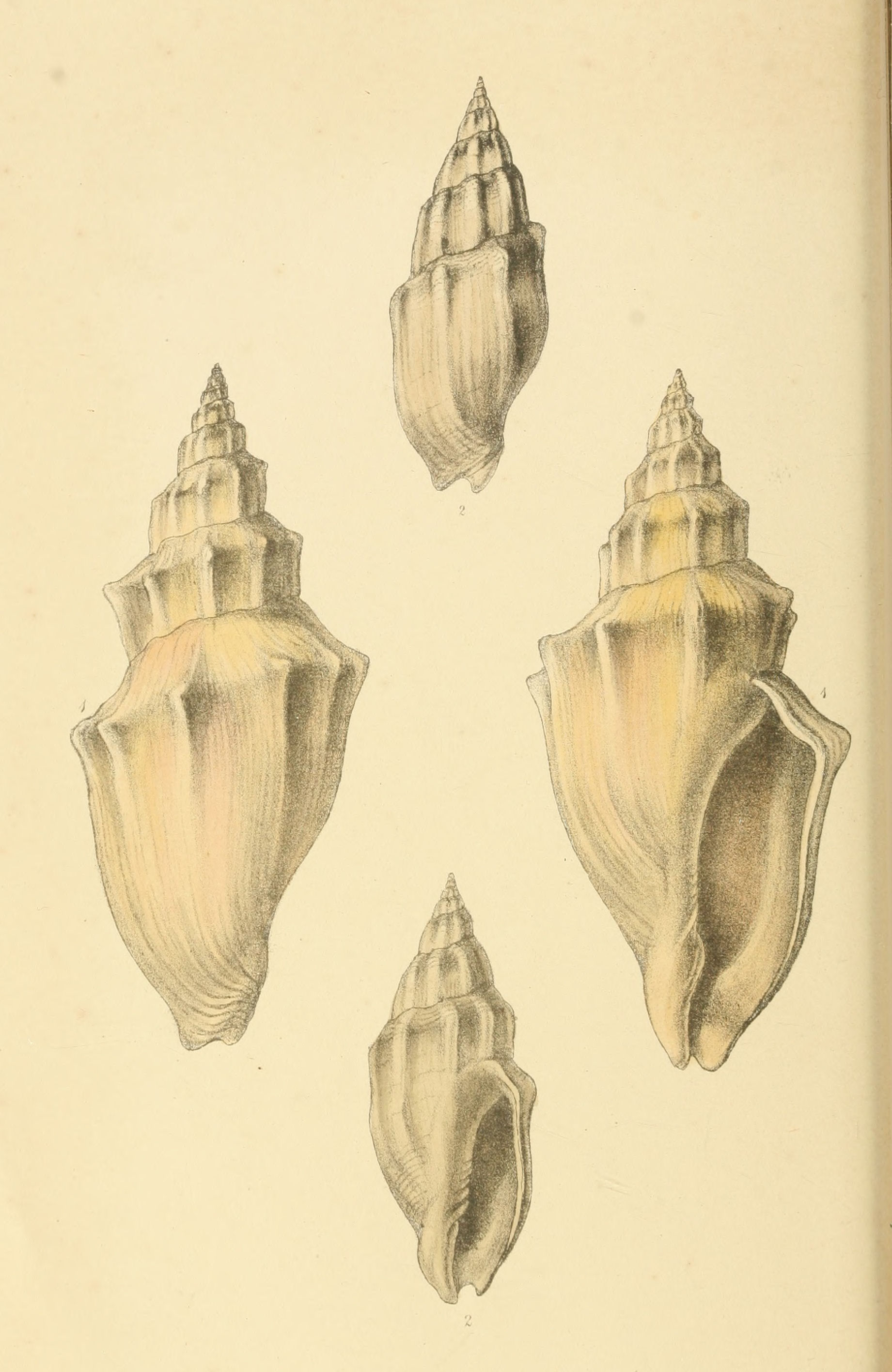 Shell turrited, fusiform, the base contracted and slightly recurved; pillar with 4-5 plaits, the upper plait sulcated: outer lip smooth, or entire. Aperture narrow, striated within, and presenting an internal groove at its upper extremity. Nobis.