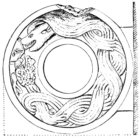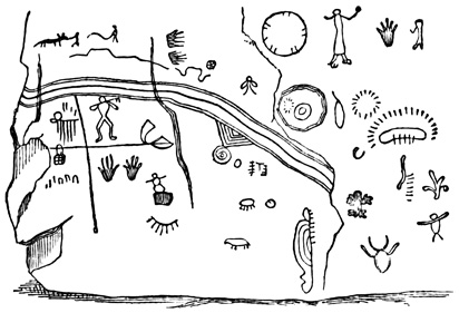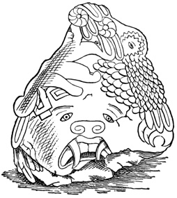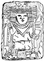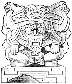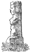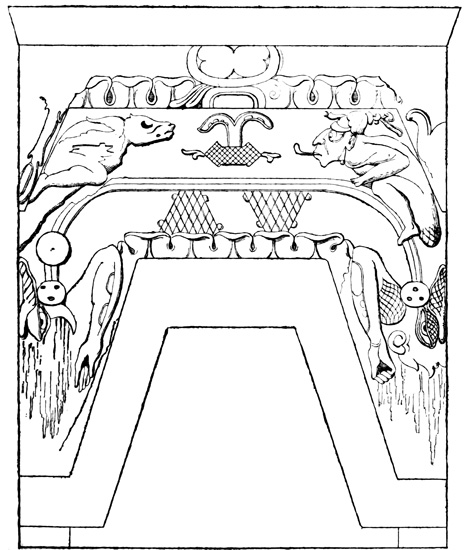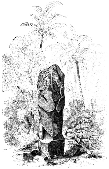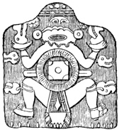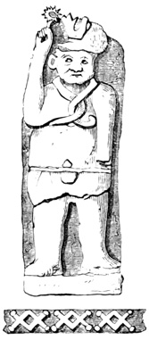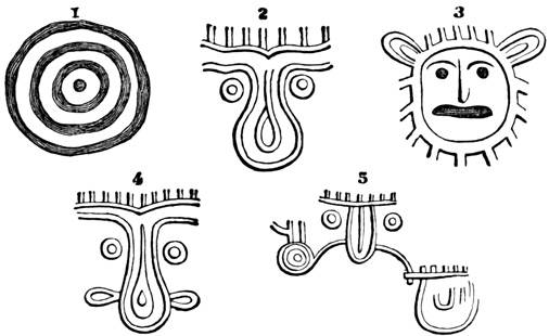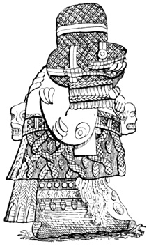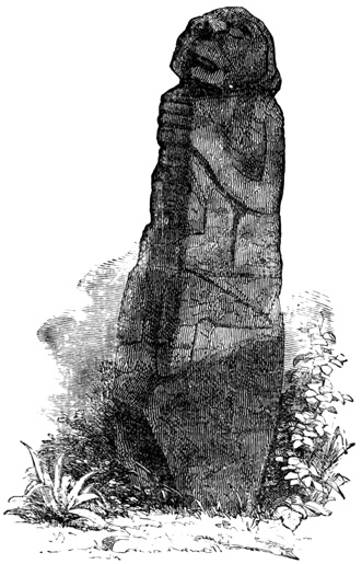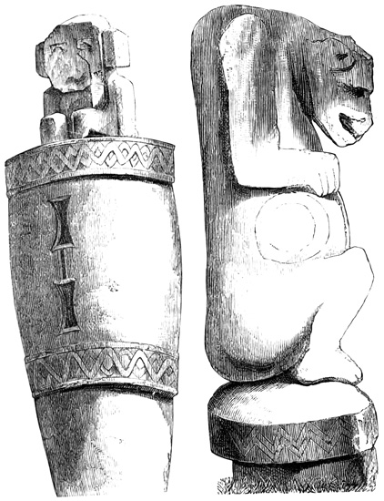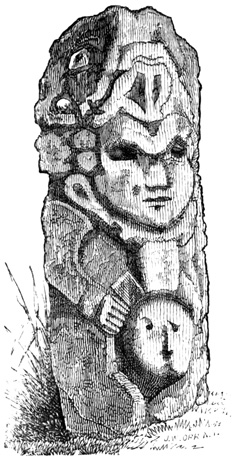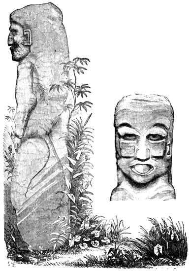 The province of Chiriquí lies on the Pacific side of the Isthmus, and it is in its central region about the town of David, that monuments of a past age have been unearthed.[II-3] These monuments are of three classes; the first consisting of rude figures cut on the surface of large boulders. The best known of this class, and in fact the only one definitely described, is the Piedra Pintal at Caldera, a few leagues from David, which is fifteen feet high, about sixteen in diameter, and somewhat flattened at the top. Top and sides are covered with curves, ovals, and concentric rings; while on the eastern side there are also fantastic figures, with others supposed to represent the sun, a series of varying heads, and scorpions. The figures are cut to a depth of about one inch, but on the parts most exposed to the weather are nearly effaced.
