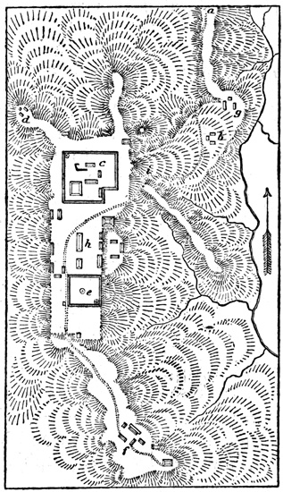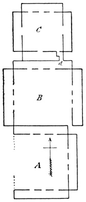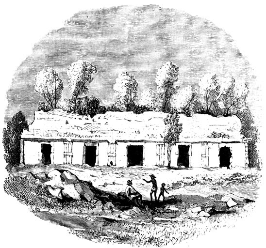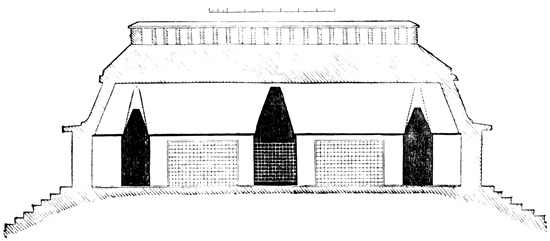 [XII-43] Ingersoll gives these dimensions as 33 and 22 feet respectively, and speaks of three equi-distant doorways, apparently alluding to the same structure.