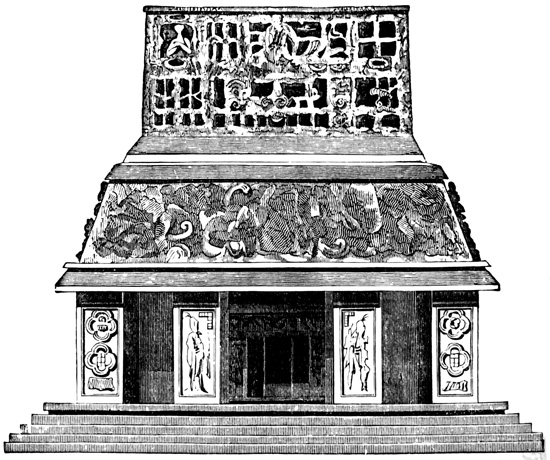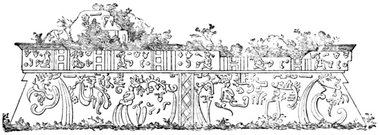 It is believed that the antiquary's zeal for all coming time will be brought to bear on no other objects than those which now claim our attention and search; that is, although new monuments will be brought to light from their present hiding-places, no additions will be made to their actual number. With the invention of printing and the consequent wide diffusion of national annals, the era of unwritten history ceased, and with it all future necessity of searching tangled forest and desert plain for monumental records of the present civilization. That the key of our written history can ever be lost, our civilization blotted out, ruined structures and vague traditions called anew into requisition for historic use, we believe impossible. Yet who can tell; for so doubtless thought the learned men and high-priests of Palenque, when with imposing pageant and sacrificial invocation to the gods in the presence of the assembled populace, the inscribed tablets had been set up in the niches of the temple; and proudly exclaimed the orator of the day, as the last tablet settled into its place, "Great are our gods, and goodly the inheritance they have bequeathed to their chosen people. Mighty is Votan, world-wide the fame of his empire, the great Xibalba; and the annals and the glory thereof shall endure through all the coming ages; for are they not here imperishably inscribed in characters of everlasting stone that all may read and wonder?" 15