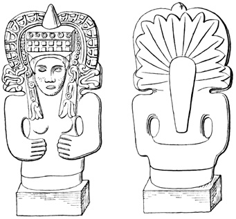 It is true that false reports may be made respecting the discovery or nature of ruined cities and other monuments; and relics may be collected and exhibited 7 which have no claim whatever to antiquity. Indeed it is said that in some parts of Spanish America, Aztec, Chichimec, or Toltec relics, of any desired era since the creation, are manufactured to order by the ingenious natives and sold to the enthusiastic but unwary antiquarian. To similar imposition and like enthusiasm may be referred the long list of Roman, Greek, Scandinavian, Tyrian, and other old-world coins, medals, and inscriptions, whose discovery in the New World from time to time has been reported, and used in support of some pet origin-theory. Yet practically these counterfeit or fabulous antiquities do little harm; their falsity may in most cases be without difficulty detected, as will be apparent from several instances of the kind noted in the following pages. There are, as I have said, few ruins of any importance that have not been described by more than one competent and reliable explorer. The discovery of wonderful cities and palaces, or of movable relics which differ essentially from the well-authenticated antiquities of the same region, is not accepted by archæologists, or by the public generally, without more positive proof of genuineness than the representations of a single traveler whose reliability has not been fully proved.
