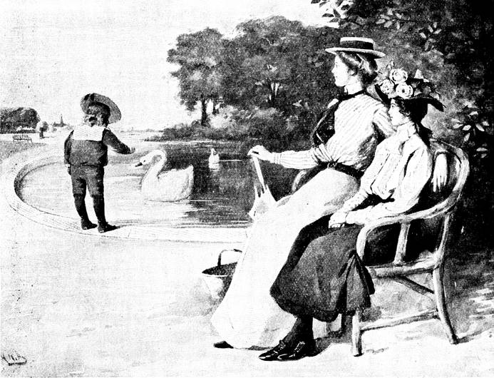 Mrs. Burton looks as young as her husband, and Winnie is always taken by strangers to be her younger sister, which is a source of great delight and comfort to the girl, as she is very proud of her dainty and stylish mother. Mrs. Burton has soft brown hair, always prettily dressed; her eyes are a deep, soft blue, shaded by long, curling lashes, and with straight, delicate eyebrows above. Although she does much of the household work, she manages, in some mysterious manner, to keep her hands soft and white. Winnie sometimes steals up behind her mother and puts her own little brown hands beside one of the soft white ones with a little sigh—for she would like her own to be soft and white, too—but more often with a merry laugh.