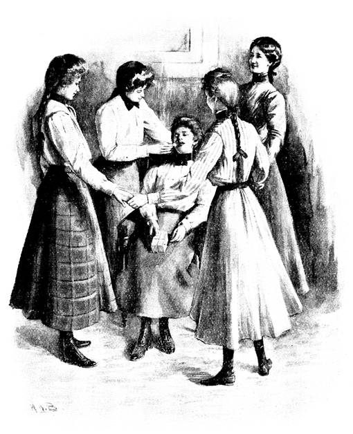 When she entered her room, three or four of the girls rushed up to her with: "Come on into the dressing-room, Win; we're going to have a meeting of the B. S. S."