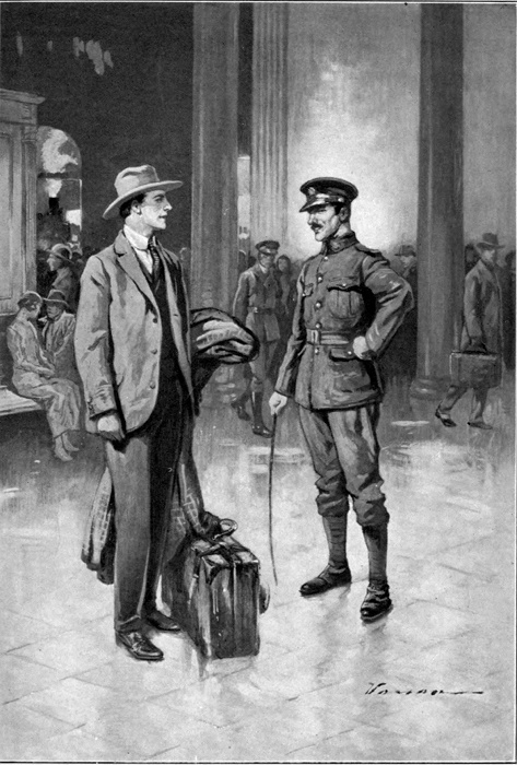 Dick handled the medical officers so ably that he and his transportation were ready for France on New Year's Day. The Kingstons saw him off. He found a seat in a first-class compartment and deposited his haversack in it. Then the four stood on the platform and tried in vain to think of something to say. Even Mrs. Kingston was silent. Officers of all ranks of every branch of the service, with their friends and relatives, crowded the long [pg 240] platform. Late arrivals bundled in and out of the carriages, looking for unclaimed seats. Guards looked at their big silver watches and requested the gentlemen to take their seats. Then Mrs. Kingston kissed Dick; then Mary kissed him; and then, lifted to a state of recklessness, he kissed Kathleen on her trembling lips. He saw tears quivering in her eyes.