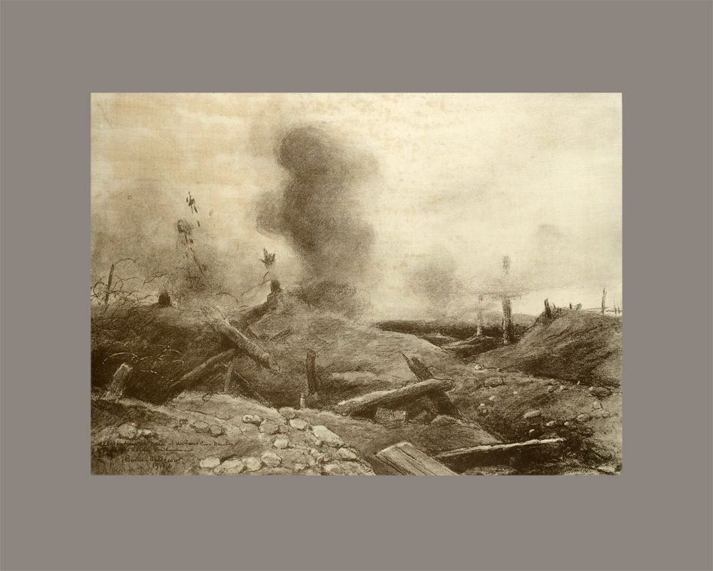 All that can be seen of the front line trenchesduring the enemy bombardment