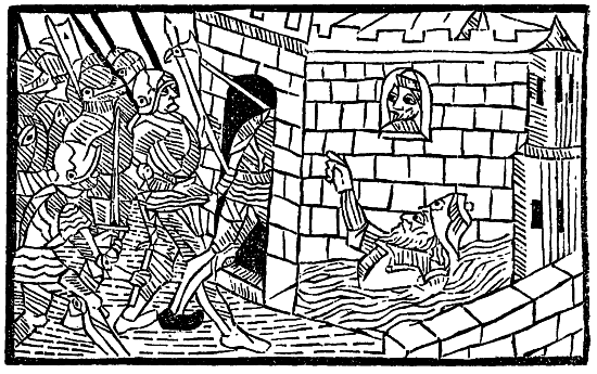 | Comment la tour fut escartellee par enchantement. et les françoys furent en grant peril de mort et restaurez par ung assault qu'ilz firent sur les payens. | Le .xvii. chapitre. |