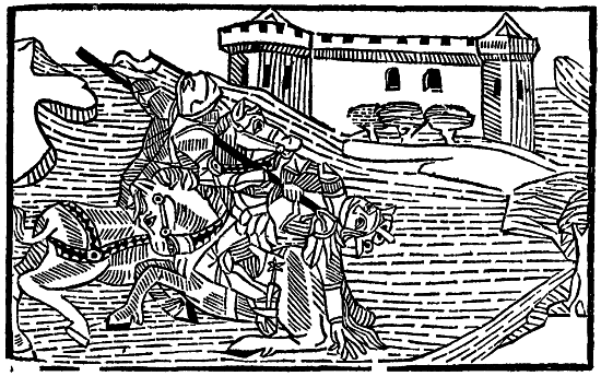 | Comment le cheval de richard vint passer par l'excercite de l'admiral et fut veu et congneu des pers de france tant qu'ilz se pensoyent qu'il fut mort. et comment le pont de mantrible fut gardé. | Le .iii. chapitre. |