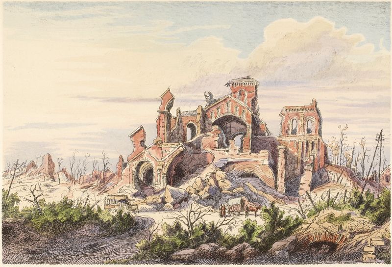 Cette opinion fut confirmée par les trois années de guerre qui suivirent et au cours desquelles la marée allemande, dans ses mouvements de flux et de reflux, a porté de nouveau ses ravages, en certains points du front, avec une perfection destructrice qui n'avait jamais encore été atteinte.