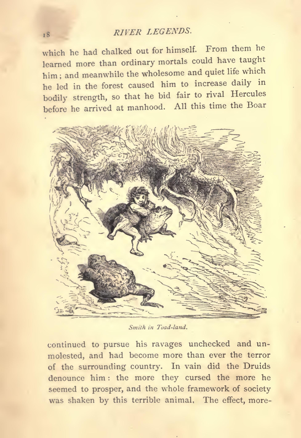 Father Thames and Father Rhine................003 The Messenger.................................005 Father Thames after his Ale...................006 The Boar......................................008 The Boar’s Family.............................010 The Infant Smith..............................013 The Sacrifice of Smith’s Father...............015 Smith in Toad-land............................018 The Snakes....................................022 Bertha the Druidess...........................027 The Road into the Forest......................035 The Last of the Boar..........................046 The Baroness and her back hair................056 Father Rhine and his Elves....................059 The River-Demon Thief.........................064 The Greedy Child..............................067 The Devilet...................................072 Martha rousing the Peasants...................078 Father Rhine and the three Baronesses.........081 The Swan-sisters..............................084 Crazy Timothy.................................092 The Old Harper................................097 She keeps the Pigs............................115 She watches the Battle........................132 Giants Mountain-building......................143 Bramble-buffer Storm-making...................148 He uproots the Tree...........................153 Hans sent aloft...............................163 Hans in the Giant’s Mouth.....................166 The Mouth Fortified...........................167 The Giant weeps...............................170 The Giant’s Release...........................173 The Castle....................................181 Mannikins at Play.............................187 Goody Tickleback’s Steed......................188 Flight of the Witches.........................202 The Sea-serpent...............................225 Father Rhine’s Retreat........................252
