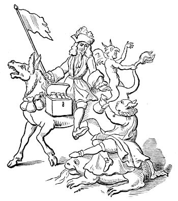 | THE AGE OF THE REFORMATION—THOMAS MURNER; HIS GENERAL SATIRES—FRUITFULNESS OF FOLLY—HANS SACHS—THE TRAP FOR FOOLS—ATTACKS ON LUTHER—THE POPE AS ANTICHRIST—THE POPE-ASS AND THE MONK-CALF—OTHER CARICATURES AGAINST THE POPE—THE GOOD AND BAD SHEPHERDS | 244 |