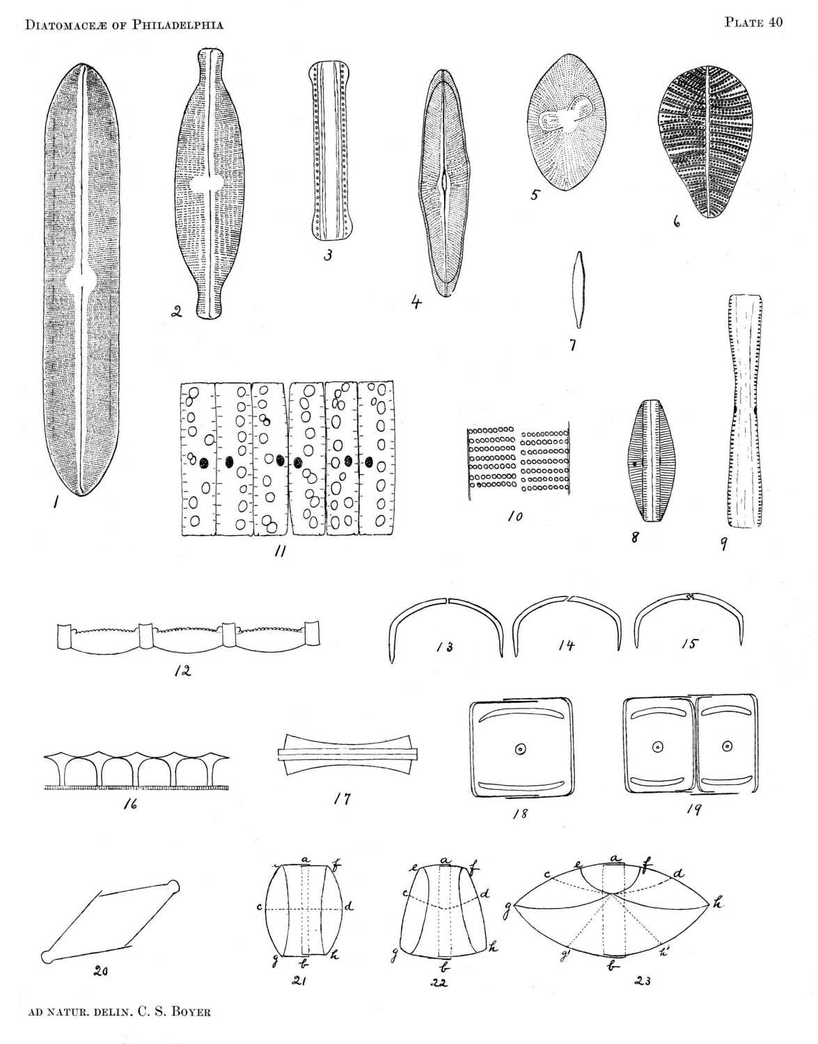 The Project Gutenberg EBook of The Diatomaceae of Philadelphia and Vicinity, by Charles Sumner Boyer This eBook is for the use of anyone anywhere at no cost and with almost no restrictions whatsoever. You may copy it, give it away or re-use it under the terms of the Project Gutenberg License included with this eBook or online at www.gutenberg.org Title: The Diatomaceae of Philadelphia and Vicinity Author: Charles Sumner Boyer Release Date: January 3, 2014 [EBook #44569] Language: English Character set encoding: ISO-8859-1 *** START OF THIS PROJECT GUTENBERG EBOOK DIATOMACEAE *** Produced by Charlene Taylor, Bryan Ness, Keith Edkins and the Online Distributed Proofreading Team at http://www.pgdp.net (This file was produced from images generously made available by The Internet Archive)