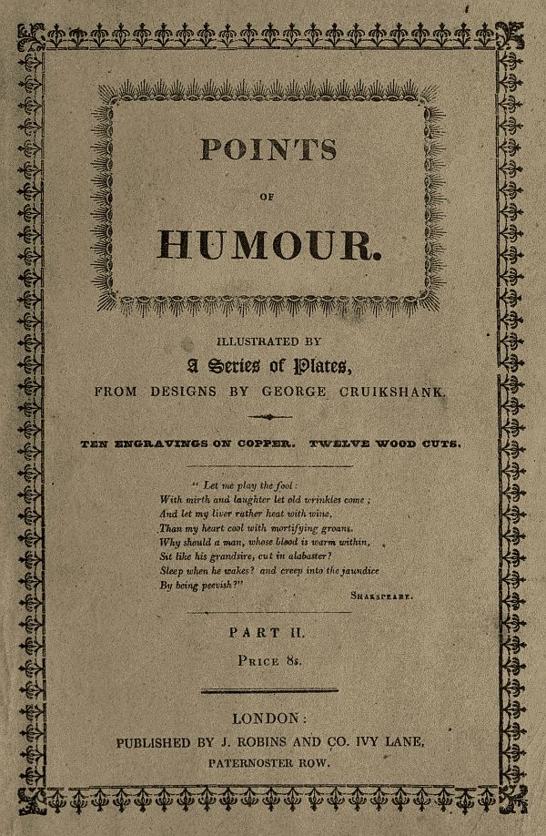 The best preface to this set of the Points of Humour is the former set, which, we are credibly informed, has favorably disposed the muscles of our readers for repeating a certain cackling sound, which is heart-food to our friend George Cruikshank.