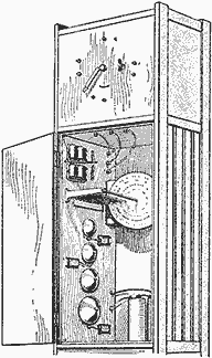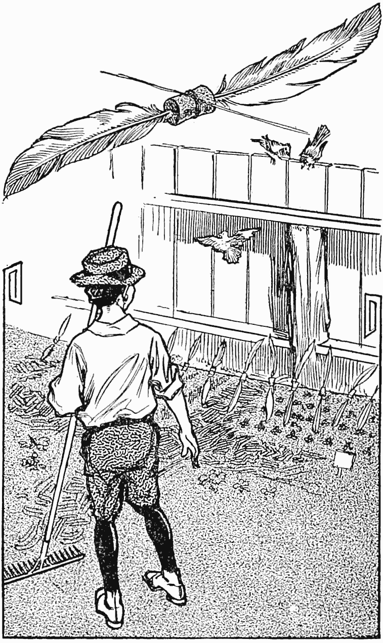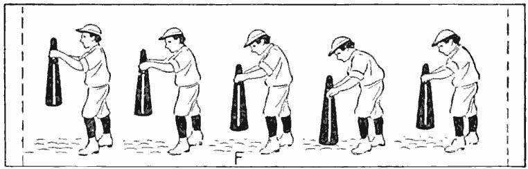 To operate the clapper, it is allowed [454] to hang straight down, while the right hand grasps the handle and whirls the box in a circle around to the left.—Contributed by C. C. Fraser.