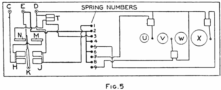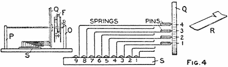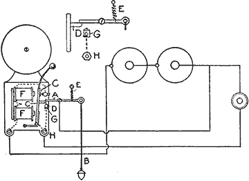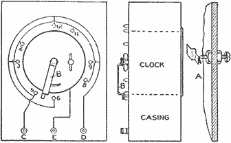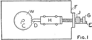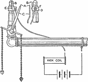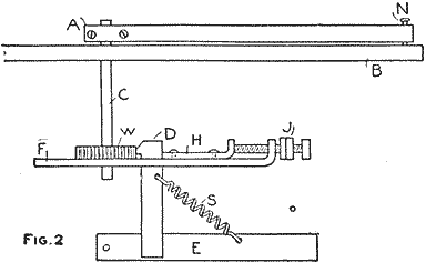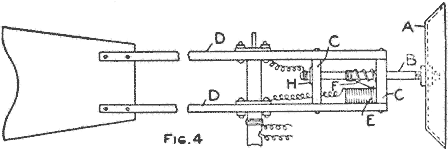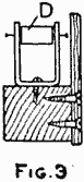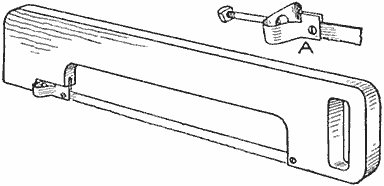 A flat piece of steel spring, 1/2 in. wide and long enough to reach from the rear end of the box to the teeth of the ratchet wheel, is shaped as shown at D. The spring may be made from a stiff piece of corset steel or bicycle trousers guard. The spring is fastened with a nail through the end and box sides and a second nail passes through the sides over the spring, about 2 in. forward from the first nail. This is to give the spring tension on the teeth.