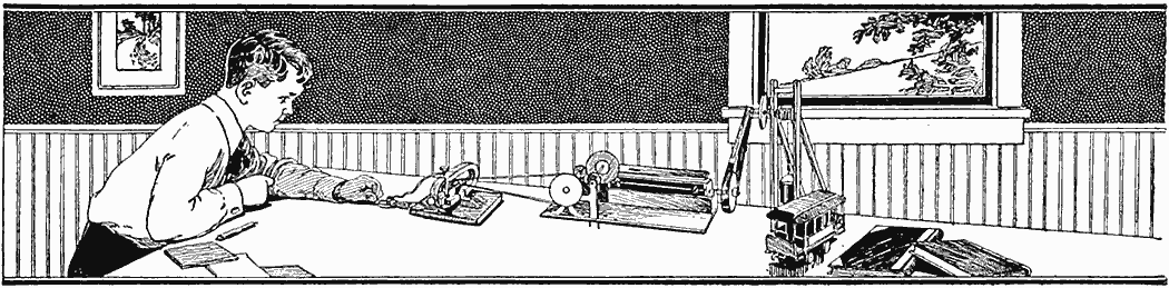 for the material used in the book is a careful selection of only those articles which are new, practical and of more than ordinary interest; the selection having been made by mechanical experts who still have active recollections of their boyhood interests. It gives complete directions for making all the things boys love to build and experiment with in the fields of electricity, mechanics, sports, arts and crafts work, magic, etc., such as Electrical Appliances—Steam and Gas Engines—Turbines—Motors—Wireless and Morse Telegraph—Self-Propelled Vehicles—Toboggans—Ice Boats—Canoes—Paddle Boats—Punts—Camping Outfits—Tents—Fishing Tackle—Magic Lanterns—Searchlights—Cameras—Telescopes—Gliders, Kites and Balloons—Electric Furnaces—Lathes—Pottery Kilns. A boy would be an old man before he could make half the things described in this wonderful book. It is entirely different from any other published and has