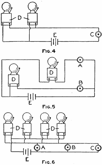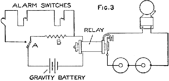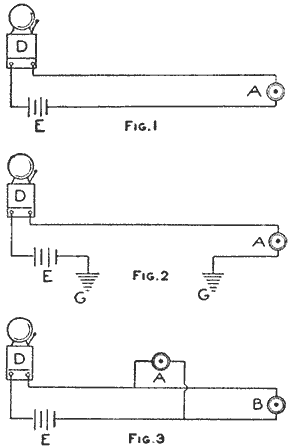 To measure the distance between [3] stations, a 50 or 100-ft. tape, or some accurate substitute, is necessary. An ordinary piece of iron telegraph wire, 105 ft. long, is a good substitute. A point, about 2-1/2 ft. from one end, is marked with a little lump of solder. A chisel dent in this solder will mark one end of the 100-ft. section. Then, with a borrowed tape or a good rule, measure off and mark every 10 ft., just as the first point was marked, until the entire 100 ft. have been laid off. The last 10 ft. should be divided into feet. In all this measuring and marking, the wire must be stretched out taut and straight. The extra 2-1/2 ft. at each end are used for making handles. By estimating the tenths of a foot, measurements can be made with such a tape, or "chain," as an old-time surveyor might call it, just as accurately as they can be laid off on the map.