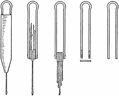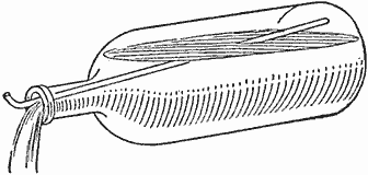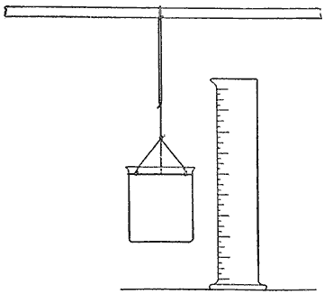 Now place in the large tube a quantity of as pure water as can be obtained—fresh rain water will answer very well and distilled water still better. Immerse the small tube in the water in the large tube and allow it to come to rest. Make a small mark on the small tube with a file, level with the surface of the water in the large tube. If the hydrometer is placed in a liquid lighter than water and allowed to float, the mark made on the tube will always be below the surface of the liquid in which the instrument is placed, and the mark will be above the surface of the liquid when the liquid is heavier than water.