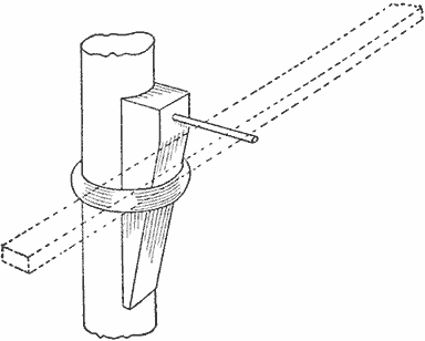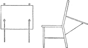 A vertical stick is fastened to the front edge of the board by means of a notch and wedge. In the upper end of this stick a very small hole is bored for a sight, similar to a peep sight on a rifle.