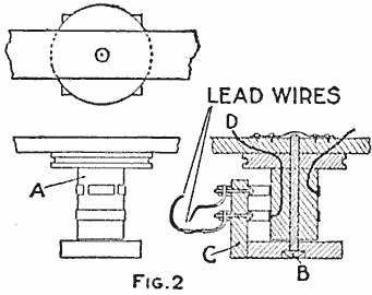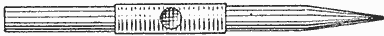 Roll one end of a strip of sheet brass, 7/16 in. wide and 2-3/4 in. long, into a tube large enough to firmly hold a small steel prick punch. Place the opposite end of the brass strip in between the two ends C. These ends should spring together slightly in order to hold the punch D at any height it may be placed. If accurately made, the point of the punch will be exactly in the center of the V-shaped trough.