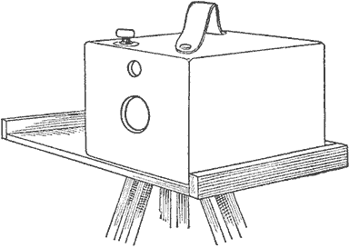 An ordinary drawing board, with the attachments shown, provides an easy way to sketch pictures, even if one is not proficient in this line of work. It is only necessary to look through the sight and move the pencil about so that the knot in the thread follows the outline of the landscape or object being drawn.