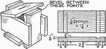 As I needed a box with a number of narrow partitions and it was impossible to cut grooves for the sections without removing the bottom, I spaced off the places for the partitions with pieces of thin wood and fastened these in place with small nails clinched on the outside of the box. This method was much more rapid and satisfactory than sawing the grooves and cutting them out with a wood chisel.—Contributed by James M. Kane.
