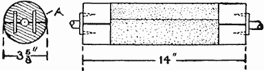 The sander is constructed of a wood piece, 9 in. long and 3-3/8 in. in diameter. A groove is cut in one side of the rounding surface to admit the ends of the abrasive which may be fastened there with tacks.