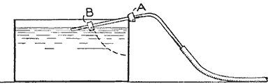 Roll up a soft rubber hose tightly so that it will be flattened to force out all the air and drop one end into the liquid, then let the coil unwind as it falls down on the outside. The uncoiling causes a slight vacuum in the hose and the liquid follows it up and starts the flow instantly.—Contributed by L. J. Monahan, Oshkosh, Wis.
